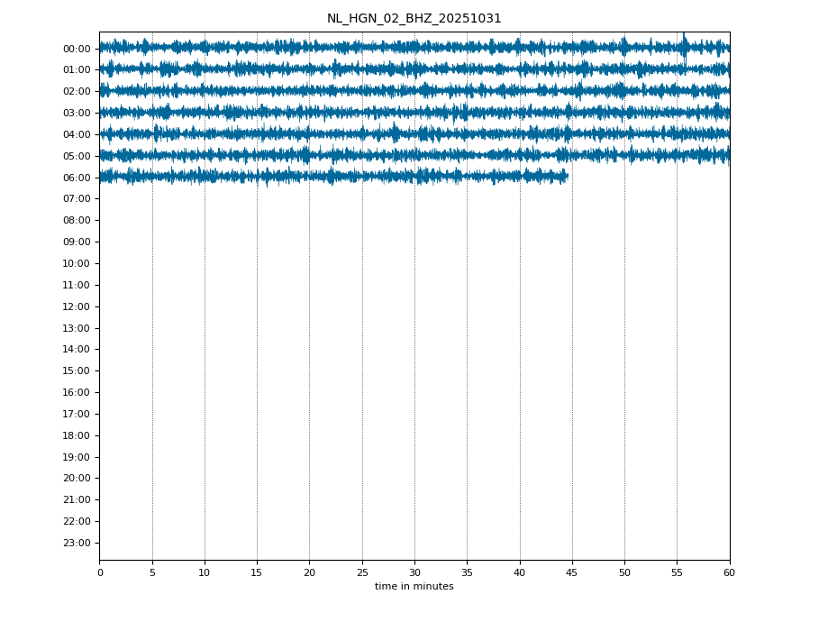 U ziet hier de registraties van het seismische en akoestische netwerk van het KNMI.